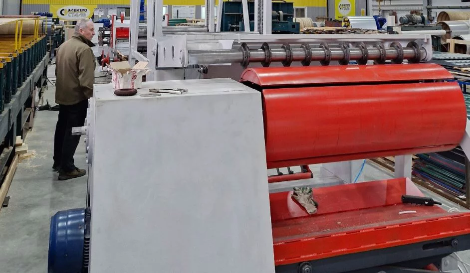«Это линия продольной резки рулонного проката. В рамках реализации нашим заводом проекта «Расширение выпуска инновационных водосточных систем» запускаем новую линию для производства оцинкованного штрипса, который является заготовкой для водосточных систем и доборных элементов кровли», - говорится в сообщении директора.