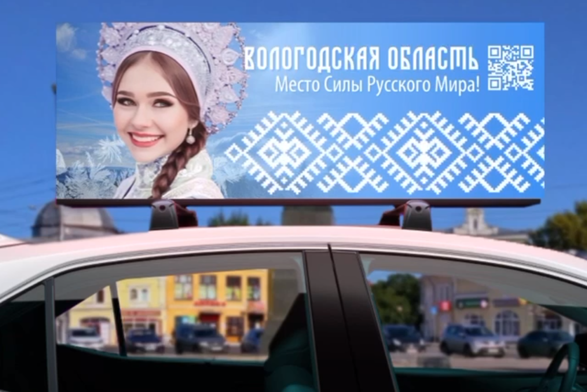 На крыши такси установили интерактивные цифровые экраны, на которых демонстрируют короткие ролики об основных туристических зимних маршрутах региона. По словам губернатора Георгия Филимонова, так правительство работает над узнаваемостью региона, чтобы о Вологодской области слышали и хотели сюда приехать люди со всей России.